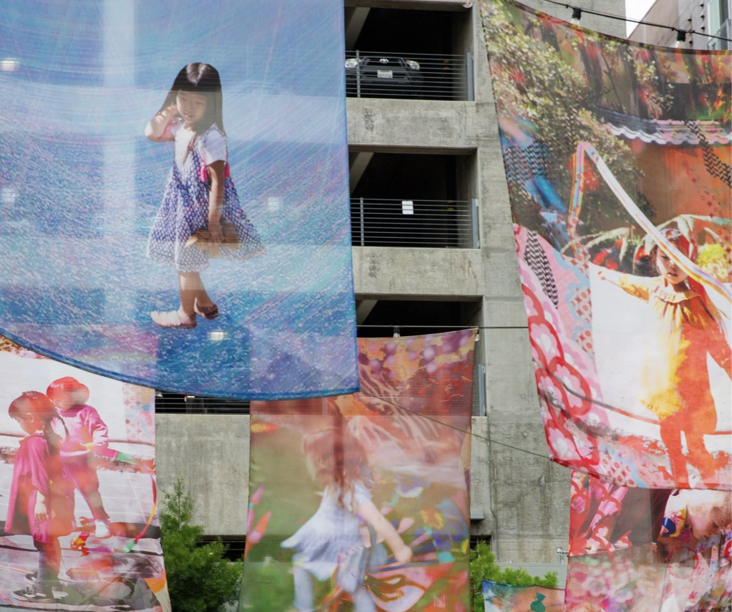 Artist Faith-Ann Young presents three site-specific installations of Kibō Nobori at JACCC, inspired by Japanese koinobori—carp streamers flown for Children’s Day—unfolding as a series of translucent “hope flags” across the campus.